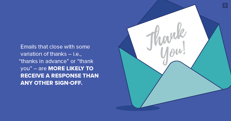 In fact, emails that close with some variation of thanks – i.e., “thanks in advance” or “thank you” – are more likely to receive a response than any other sign-off.